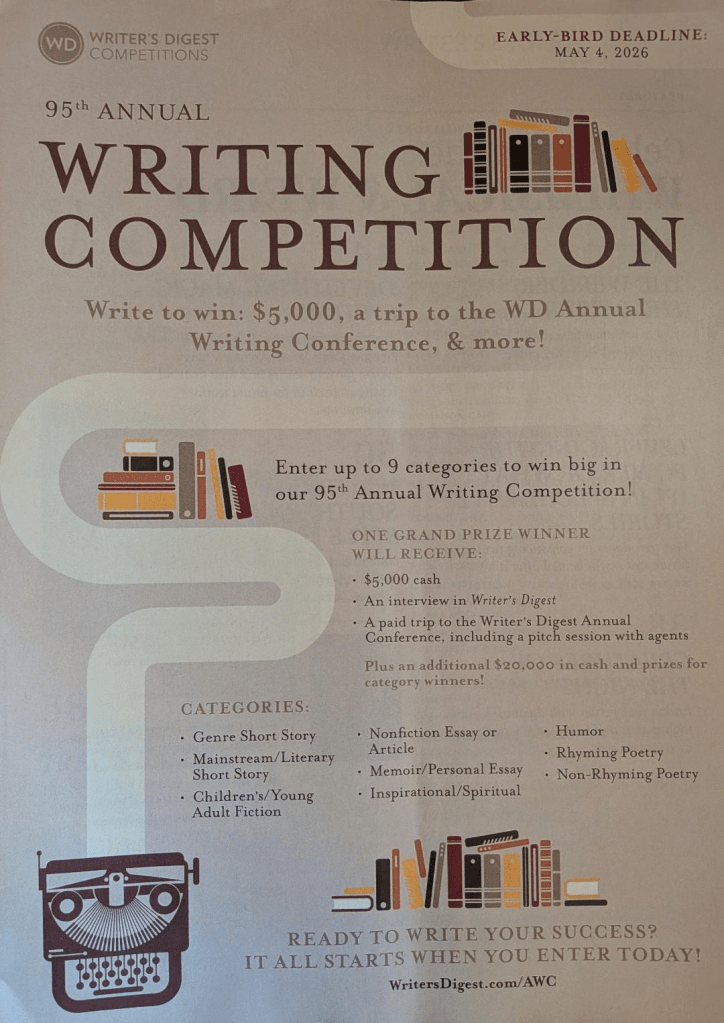 Prose of #3,000 in cash, a trip to the Writer’s Digest Annual Conference, and an interview for a feature article.
